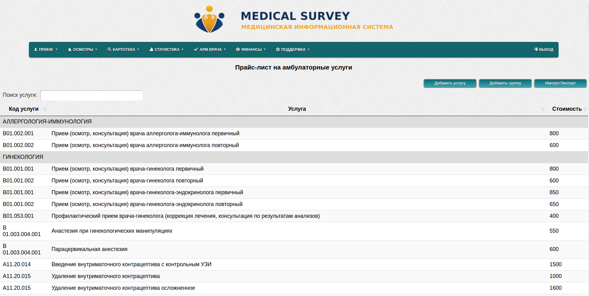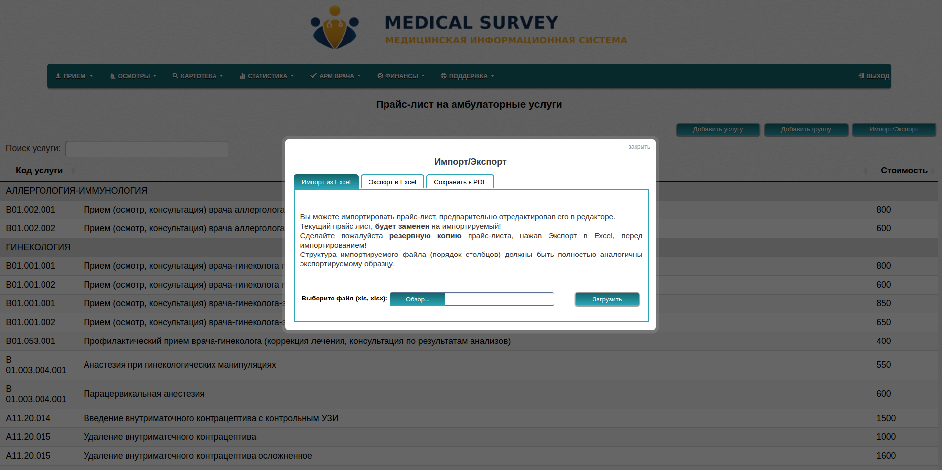 Добавив в МИС MEDSURVEY работу с прайс-листом компании, мы постарались решить сразу несколько важных задач: