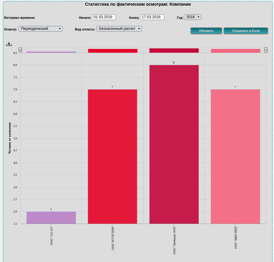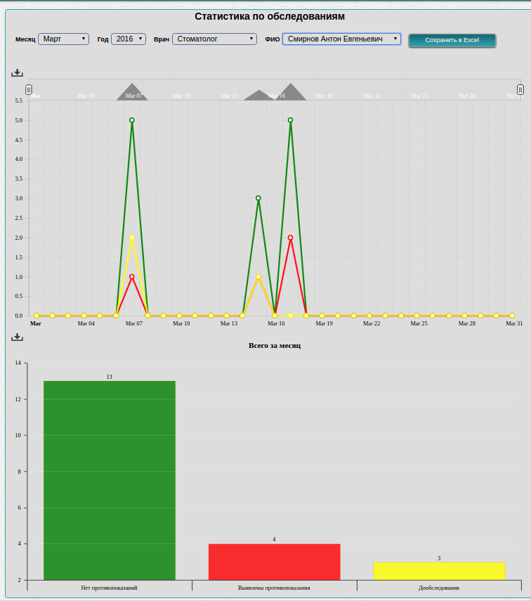 Для любого руководителя очень важно иметь наглядную информацию об обстановке дел в его компании: Сколько осмотров провели за день врачи, сколько сотрудников и от какой компании посетили центр, сколько услуг им было оказано, какой врач принес максимальную прибыль - это обычные примеры статистической информации.