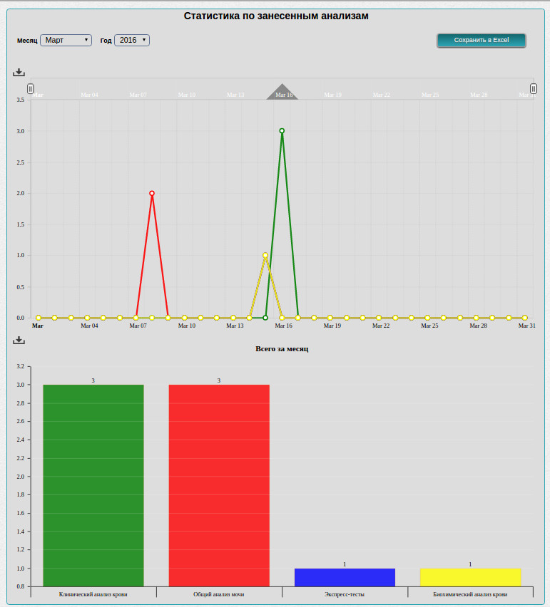 Но работа руководителя медицинского центра может не ограничиваться только лишь финансовой частью. Благодаря модулю "АРМ врач" можно получать информацию о наиболее часто встречающихся заболеваниях в центре, среднем росте и весе пациента, и даже нагрузке на врачей.